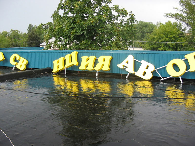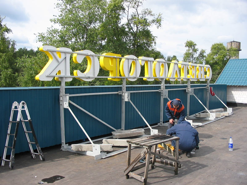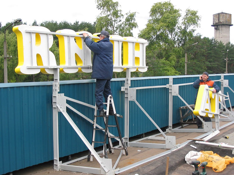 Наружная реклама » Процесс изготовления » Процесс монтажа крышной установки из объёмных букв "Автостанция Светлогорск"